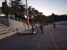 红日初升,其道大光。五星红旗伴着国歌在风中飘扬。炙热的目光追随着国旗就似我们的心紧贴着党永不相离。
