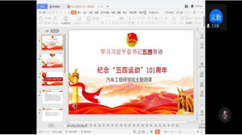 潜龙腾渊,鳞爪飞扬,乳虎啸谷,百兽震黄。朗读结束后,为让同学们时刻牢记并践行五四精神,会议再次叙述了五四运动的起因与经过,也讲述了疫情期间当代青年的五四精神。