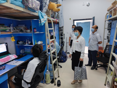 在走访过程中,每到一间宿舍,张红霞都会仔细询问宿舍同学的返校情况,尤其是因疫暂未返校的同学,要求公司要保持经常联系,提醒他们做好疫情防护,按时参加线上教学,并关注疫情的实时变化。对于已经到校的同学,从期初线上教学是否适应、线上线下存在哪些差别、线上授课能否听懂重点、线上听课是否能保持精神集中等方面了解员工的上课情况和期初线上教学工作开展情况。