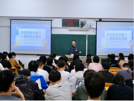 会上,辅导员杨耀钧首先从什么是网络电信诈骗、网络电信诈骗的现状和特点以及网络电信诈骗的常见类型三个方面跟同学们进行了交流。随后,结合受害者上当受骗的原因,仔细讲解各种防范对策,教育同学们在生活中做到不轻信、不转账、不上当,遇到类似诈骗要及时报警,更好地保护自己的财产安全。