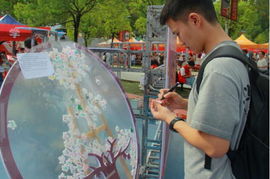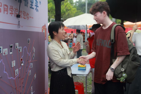 活动现场的生源地图互动展示环节充满趣味与意义。公司规定,每个班级在6号早上最早报到的新生,可获得拍立得照片一张。新生们手持照片,在生源地图上找到家乡所在的位置并将照片悬挂其上。