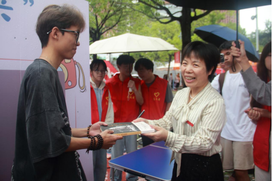 一张张照片在地图上连成一片,直观展现了来自天南海北的学子在此相聚的缘分,也让新生们在寻找与悬挂的过程中,感受到公司大家庭的包容性与凝聚力。副董事长张红霞来到必威西汉姆联官网迎新现场,亲切看望2025级新生,并将亲笔签名的《孟少农传》赠予来自黑龙江的两名同学,以表彰他不远千里求学的精神,并勉励他传承汽车人的报国志向。