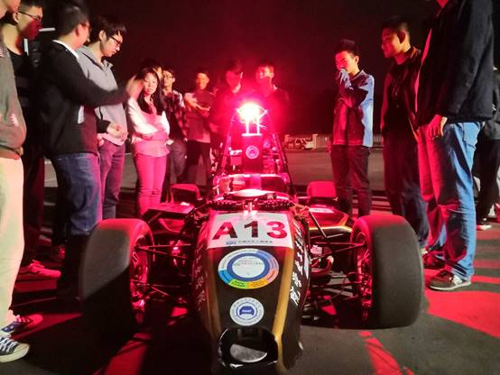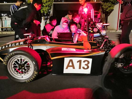 虽说是暖和的四月但是晚上的烈风仍然让人有些许不适,但是这些都不能阻挡住车队成员们的热情,偌大的一个驾校里,赛车启动一群人跟着后面一起跑,什么都不是问题,惯导和GPS每次都是一个需要解决的问题,为了使赛车定位准确,就这样一群人推着车沿着驾校一圈又一圈,没有任何的气馁与疲惫,他们脸上洋溢着的激情与希望,这样的队伍一定会越来越好吧!在不断地调试之后赛车的相关问题终于得到较好的解决办法,虽然花费时间长且辛苦,但是从没一个人的神情都可以看出来这一切都很值得!
