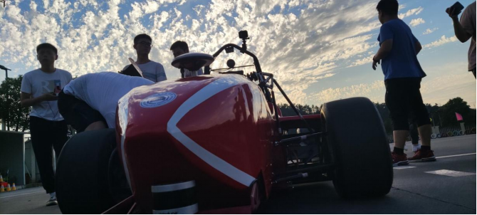 满怀热血的队员们,在一次次的调试中发现问题、总结经验,在大家的齐心协力下,调试工作有条不紊地进行,工作辛苦相伴,仍存笑容,也能收获满满的幸福回忆。夜幕降临,风中透着一股凉爽,一切工作准备就绪后,车轮开始转动,在这看似平静的夏夜。随着时间一分一秒的流逝,从红日初升到晚霞绯红,太阳升起又将落下,我们的热情超越了时间,这是HUAT人与无人驾驶方程式赛车的双向奔赴。