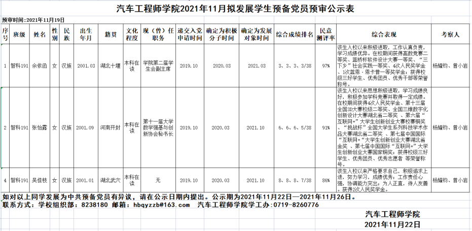 2021年11月拟发展员工预备党员预审情况公示