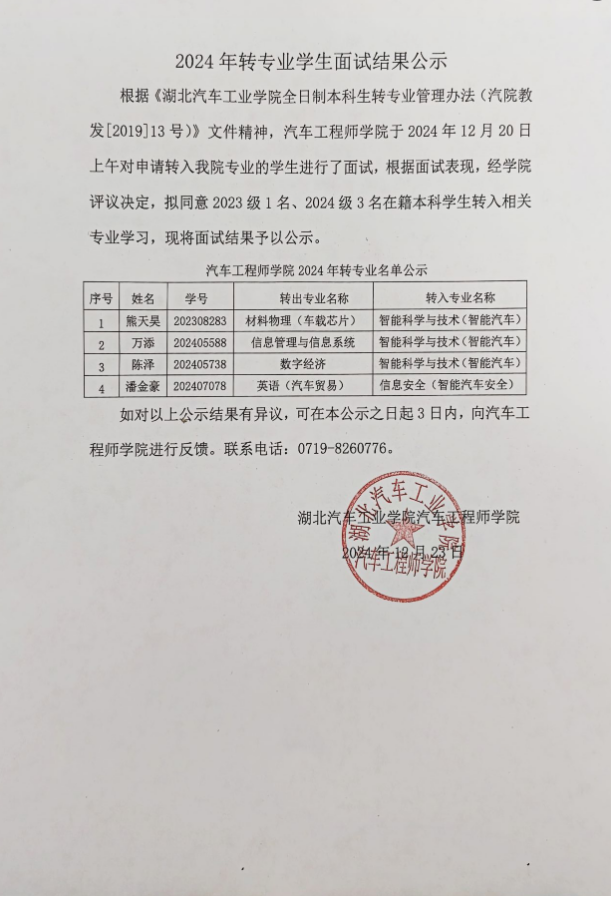 2024年转专业员工面试结果公示