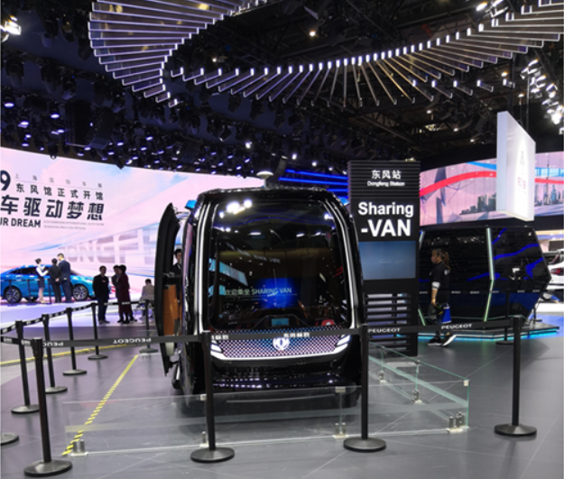 在2019上海车展上,东风Sharing-VAN移动出行服务平台正式发布。这一移动出行服务平台,由自动驾驶+远程驾驶+调度监控后台3个模块组成,集成LTE-V/5G、自动驾驶、新能源汽车、分时租赁、公共出行服务等众多亮点技术,是东风探索下一代公共出行服务新模式的最新实践成果。