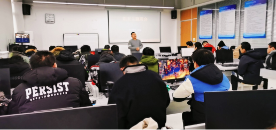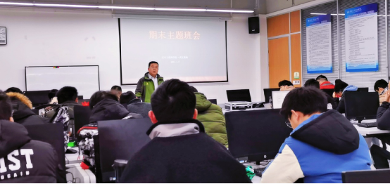 在理实一体化室,杨亚会书记、学工办主任周晔与员工进行了亲切交流与沟通。周主任首先介绍了2017级的党员发展情况,同时对2018级同学的入党情况进行了通报。之后,周主任为同学们讲解了寒假离校的安全注意事项和疫情防控的常识。