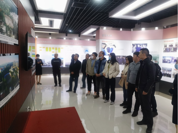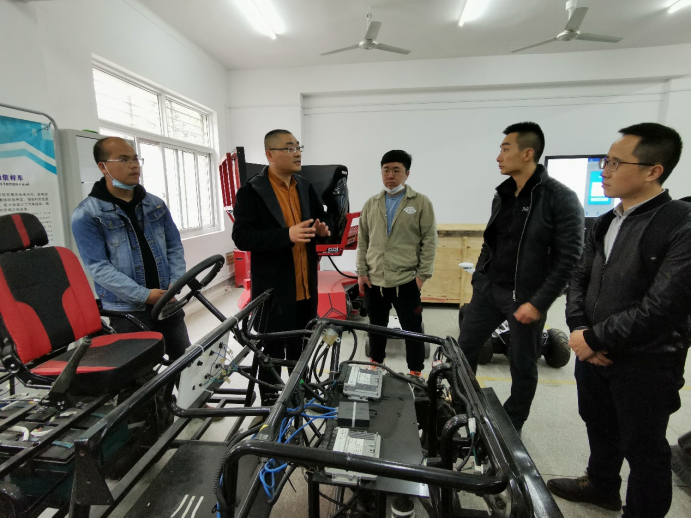 交流活动主要有校史馆及F1车队参观,产教融合研讨交流会,员工比赛情况展示等环节。下午2时许,访问团一行7人在校史馆馆长的带领下参观了校史馆,了解公司的发展历史以及与汽车行业发展密不可分的关系。随后,在第六教学楼参观了公司F1车队,对车队员工的动手能力以及科研能力提出了肯定与表扬。