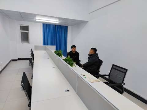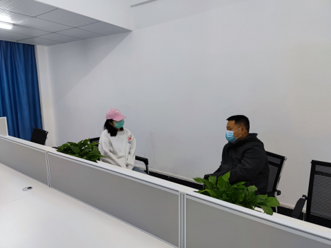 在一对一的交流过程中,周晔老师首先从生活、学习两个方面了解了毕业生在基地的基本情况。包括宿舍环境及配套设施的情况,食堂伙食是否满意;个人在学业方面平均学分绩点是否达标,修读计划中学分是否修够,外语等级考试是否通过。并对在生活和学习上存在困难和问题的员工提出了建议。尤其是学业上还存在问题的员工,给予激励的同时,实施监督。