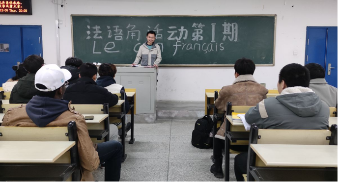 首先,法语培训班袁安同学结合自己第一学期学习法语的心得体会,为同学们讲解了法语字母表、元辅音音素的发音和音节划分的方法,同学们对法语发音和音节划分有了更加清晰的认识。
