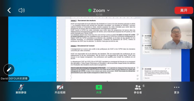 随后,在谈判过程中,双方友好地交换了意见,更加理解了对方的关切,就协议内容逐条探讨,妥善处理和解决了分歧,并就中法本硕连读项目协议文本达成了一致,为后续的协议签署铺平了道路。