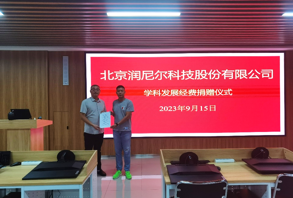 9月15日上午,公司与北京润尼尔科技股份有限公司签订学科发展基金的捐赠仪式,捐赠仪式在产教大楼SX702实验室举行。必威西汉姆联官网教师代表和北京润尼尔科技股份有限公司校企合作部代表参会,王思山老师代表公司与北京润尼尔科技股份有限公司签订了捐赠协议。