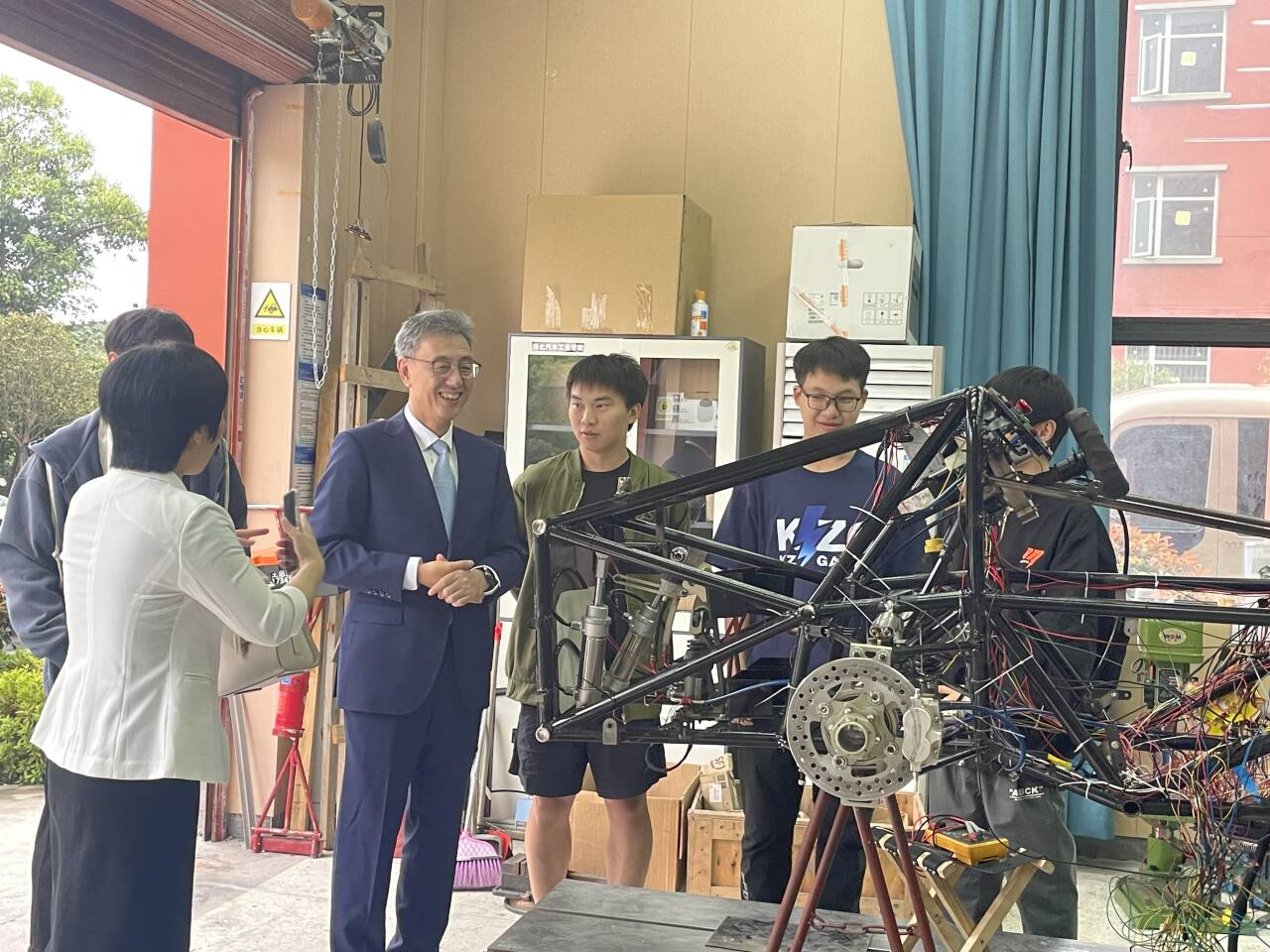 10月12日,中国汽车工程学会专务秘书长闫建来莅临老员工方程式赛车无人驾驶车队,在党委常委、副董事长张红霞陪同下参观了必威西汉姆联官网负责的老员工方程式赛车无人驾驶车队,并与队员进行了亲切交流。