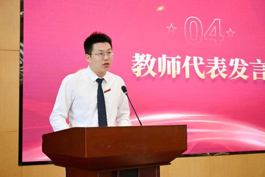 教师代表刘国阳博士从“新公司、新使命、新担当”三个方面阐述了公司发展的重要意义和未来方向,最后表达了全体教师的决心,将以“功成不必在我”的境界和“敢为天下先”的勇气,为将公司建设成为国内一流的智能网联汽车人才培养高地和科技创新引擎而不懈奋斗。