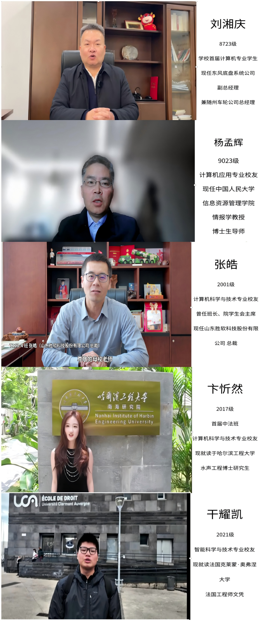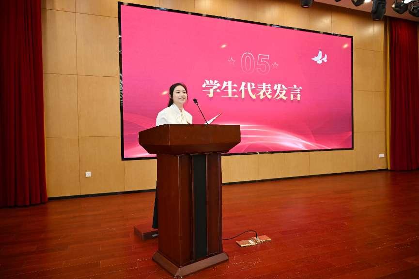 东风底盘系统公司副总经理兼随州车轮公司总经理刘湘庆、中国人民大学信息资源管理公司情报学博士生导师杨孟辉教授、山东胜软科技股份有限公司总裁张皓、哈尔滨工程大学水声工程专业博士研究生卞忻然,以及正在法国克莱蒙・奥弗涅大学深造的干耀凯等五位优秀员工代表,虽身处各地,但通过精心录制的短视频,纷纷为公司送上了最真挚的祝福。与此同时,公司的师生代表也依次上台发言,言辞之间满是对公司未来发展的美好期许与坚定信心。