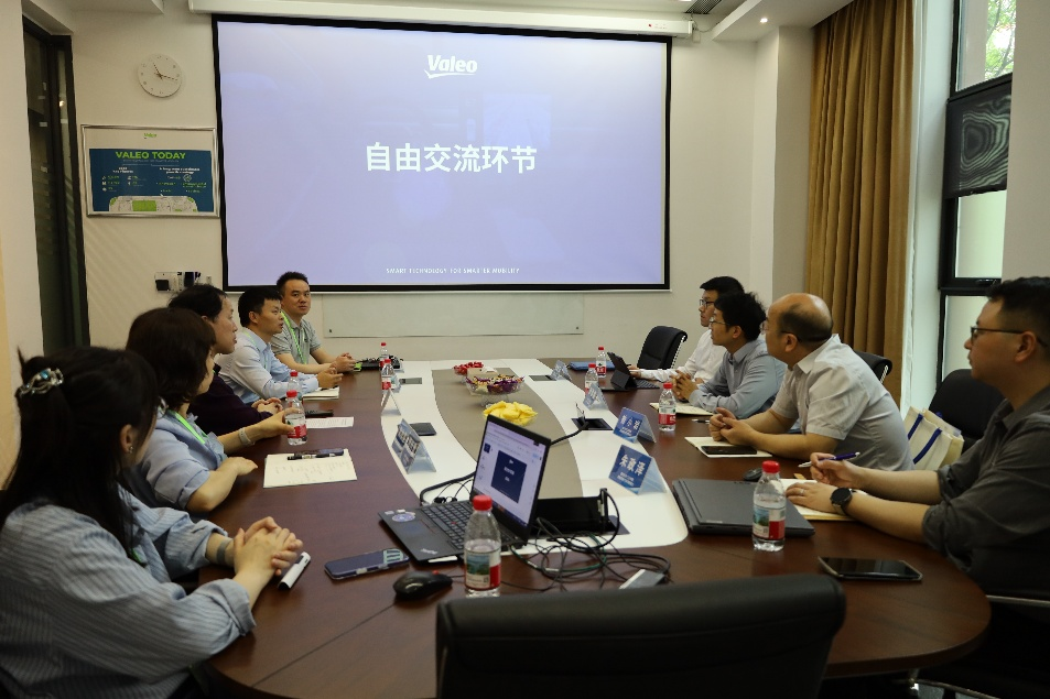 交流会议在法雷奥武汉分公司一楼会议室进行,参会人员包括法雷奥武汉智能系统总经理周战峰、人事经理黄秋荃、技术经理及专家林鹏、万磊等。