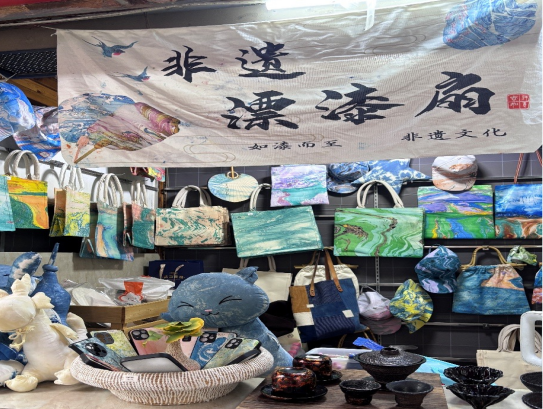 本次研学的核心亮点在于深度的互动体验。活动专门设置了多个互动体验区,并邀请到多位非遗传承人现场指导。在传承人的耐心讲解和示范下,员工们纷纷动手,亲身体验了武当官密古法琉璃制坯的艰辛与神奇,感受着陶瓷手串DIY的乐趣,尝试了中式盘扣的指尖艺术,以及木版画的拓印技巧。在扎染体验区,同学们将白布通过捆扎、浸染,创造出独一无二的蓝白图案,每一件作品都充满了惊喜。这些动手环节让书本上非物质文化遗产的概念变得可触、可感、可参与,极大地激发了大家的兴趣与热情。