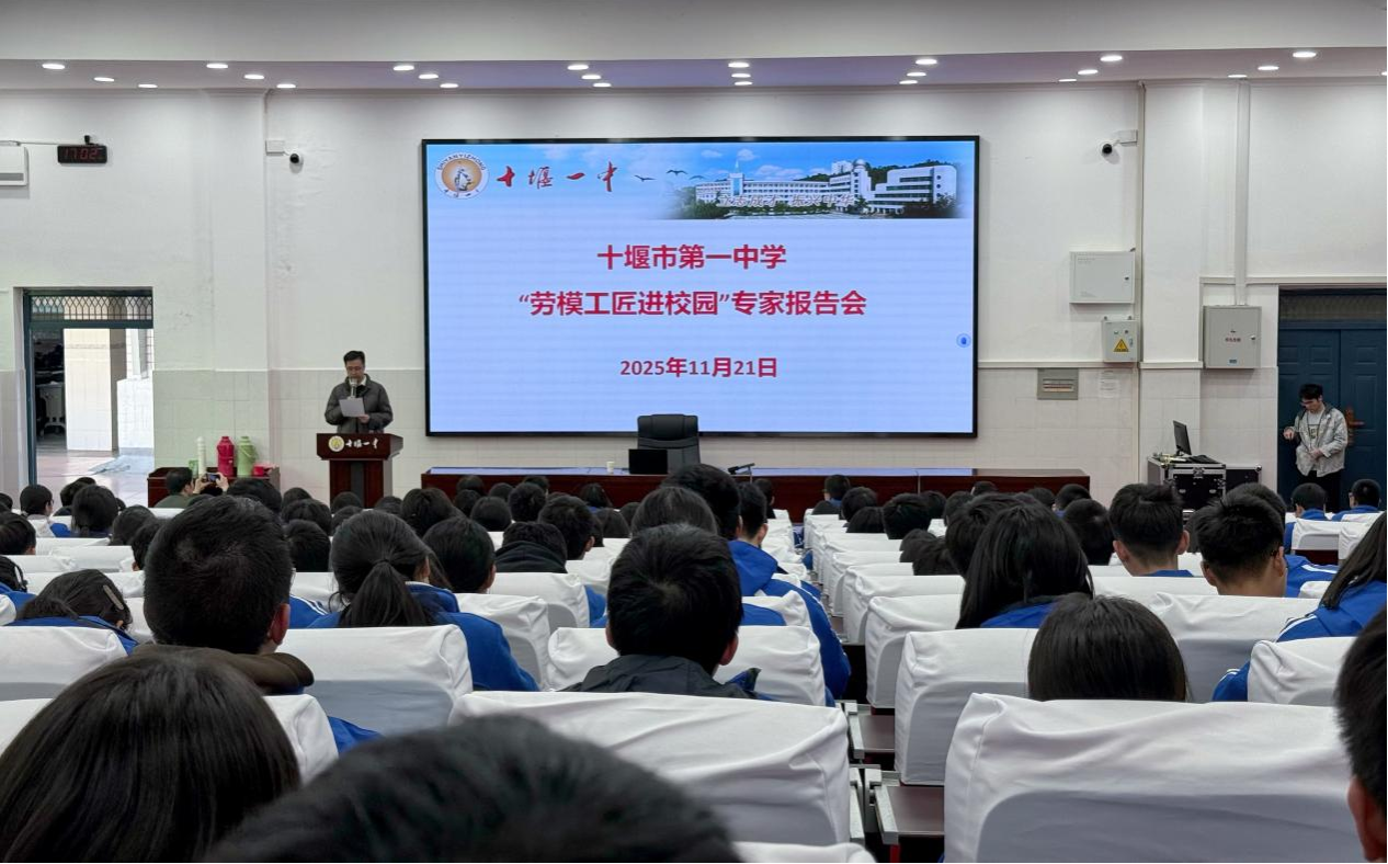 本网讯(文 余婧靓/图 杨耀钧)11月21日下午,必威西汉姆联官网联合十堰市第一中学举办招生宣传暨“劳模工匠进校园”专家报告会。活动以解读行业前沿、弘扬劳模精神、搭建校地人才培养桥梁为目标,必威西汉姆联官网经理陈宇峰、经理助理陈西亮、学工办主任杨耀钧、辅导员余婧靓及十堰一中200余名师生共同参与。