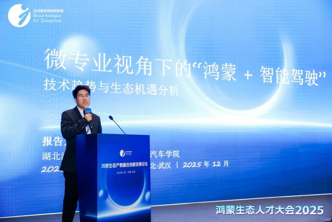 本网讯(文/图 苏毅)2025年12月27日,由全球智慧物联网联盟(GilC)主办的“鸿蒙生态人才大会2025”在武汉东湖高新区举行。本次大会以“新生态 新人才 新动能”为主题,吸引了来自政府部门、高校、科研机构及相关企业的1200余名代表参会,共同探讨鸿蒙生态背景下的人才培养新模式与产业发展新机遇。