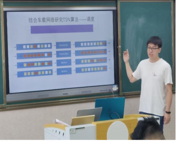 四位优秀研究生代表在交流会上展现了自己的学术风采,分享了自己的研究成果与学习心得。本次晚茶活动邀请了2019级研究生张宇丰、王哲豪、黎嘉晨和张兴旺作为主讲人,分别为大家作主题为“四轮轮毂电机驱动电动汽车稳定性协调控制研究”、“ACC的控制方法与研究”、“浅谈时间敏感网络在车载网络中的发展与应用”和“面向服务架构的智能车通信组件的研究与应用”的报告。