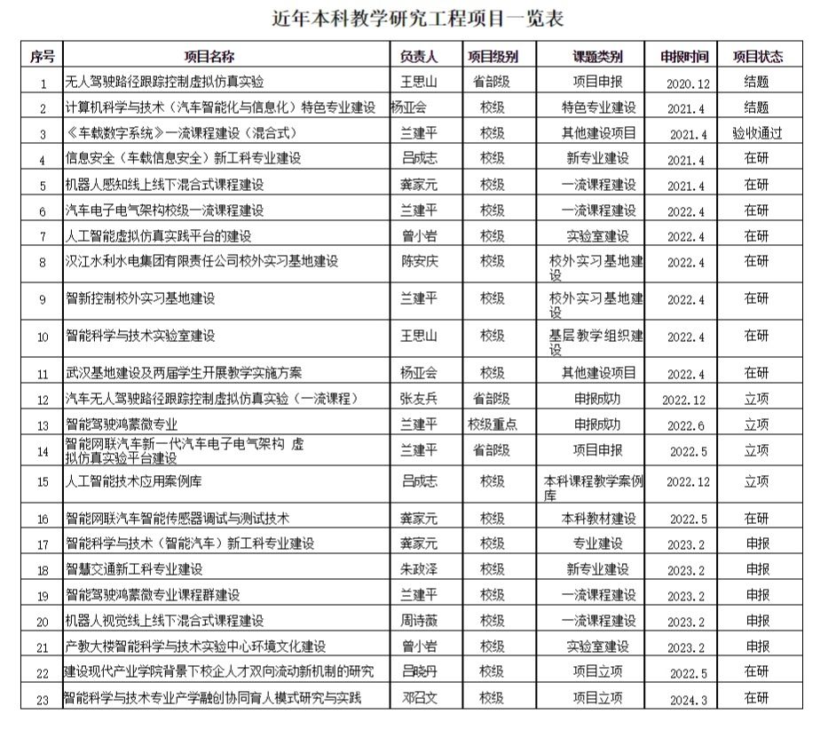 近年本科教学研究项目情况