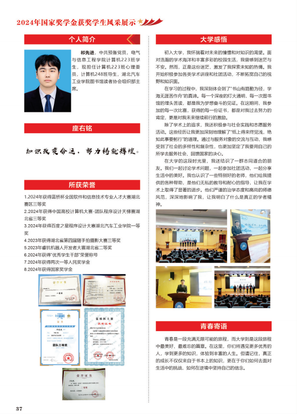 2024年国家奖学金获奖员工风采展示--祁先进