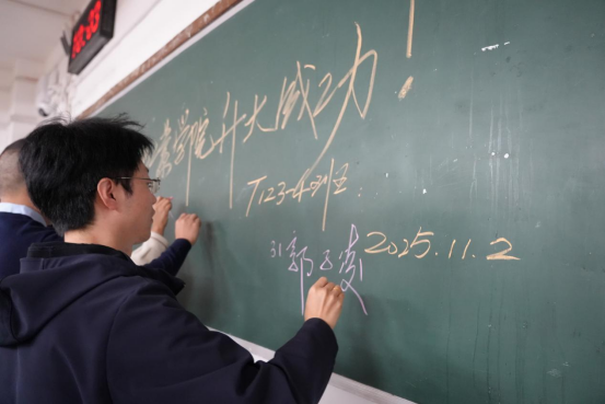 随后,员工们走进了梦开始的地方——1131自习教室。抚摸着熟悉的课桌,在黑板上郑重签下自己的名字,仿佛时光瞬间倒流,那段为理想挑灯夜读的奋斗岁月恍如昨日,令人心潮澎湃。