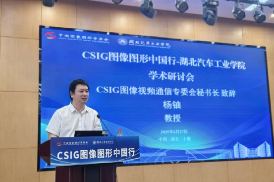 开幕式上,湖北汽车工业公司党委、副董事长张红霞教授,中国图像图形学学会图像视频通信专委会秘书长、华中科技大学电子信息与通信公司副经理杨铀教授分别作了开幕致辞,对与会嘉宾表示热烈欢迎,对本次研讨会的召开表示祝贺,并期待本次研讨会能够促进图像图形领域的学术交流和技术创新。杨铀教授还宣读了湖北省应急厅救援中心和华中科技大学电子信息与通信公司的贺信。