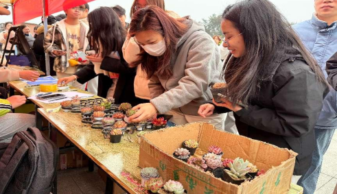 公司为参与活动的同学准备了多肉绿植作为纪念品,现场气氛热烈,同学们积极参与。(审稿 曾小岩)